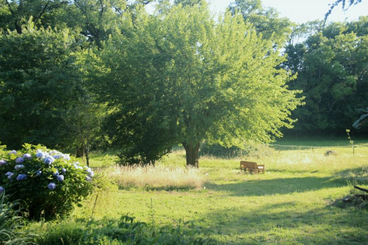 Un petit paradis de verdure où les herbes folles courent aux pieds des vénérables dont la tête se perd dans un ciel bleu infini et les vergers s’étalent dans une mer de soleil.